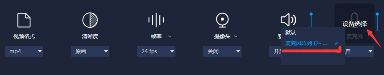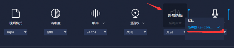 无论你是要录制电脑声音还是麦克风声音, 软件界面上的【系统声音】或【麦克风】一定要选择实际使用的声卡设备名称。