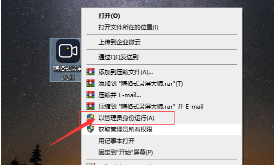 鼠标右击嗨格式录屏大师的图标,选择【以管理员身份运行】,从而打开软件进行使用。