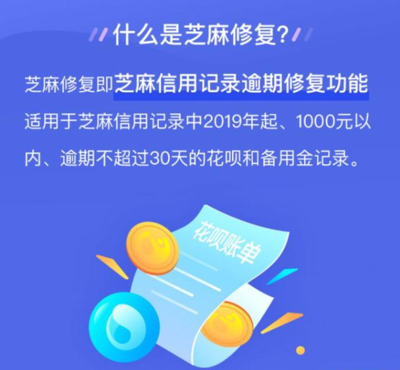 如果你真的是不小心忘了还花呗,或者是账户资金不足导致了自动还款失败,可以尝试进行芝麻信用修复。现在支付宝官方推出了“芝麻修复”功能,即芝麻信用记录逾期修复功能,适用于芝麻信用记录中2019年起1000元以内、逾期不超过30天的花呗和备用金记录。