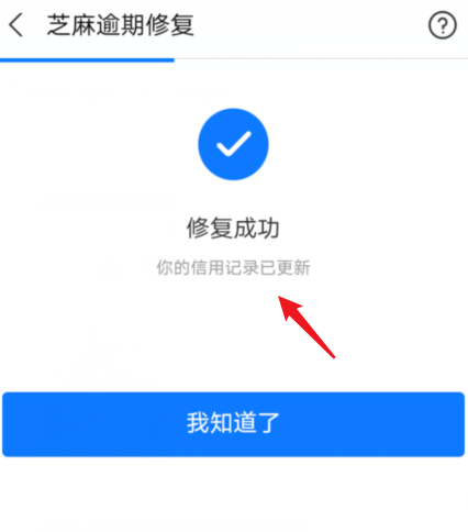 第三步:问答通过,修复完成,修复成功,守约记录将更新。