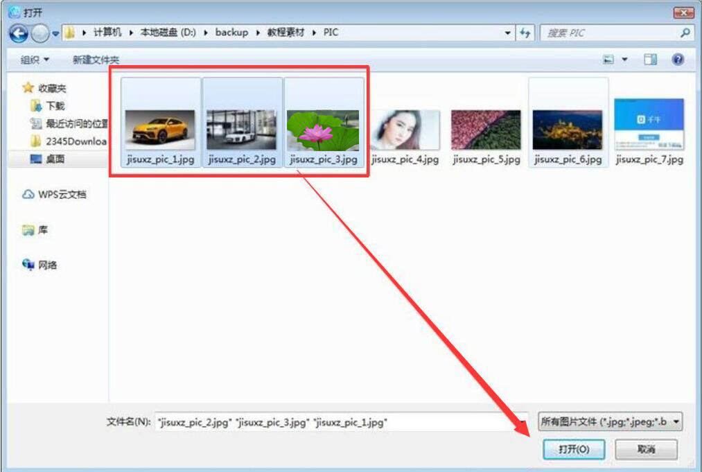 2、在弹出的窗口中,选择需要批量添加文字水印的图片,并点击“打开”按钮,将其一并导入天音批量加水印大师。