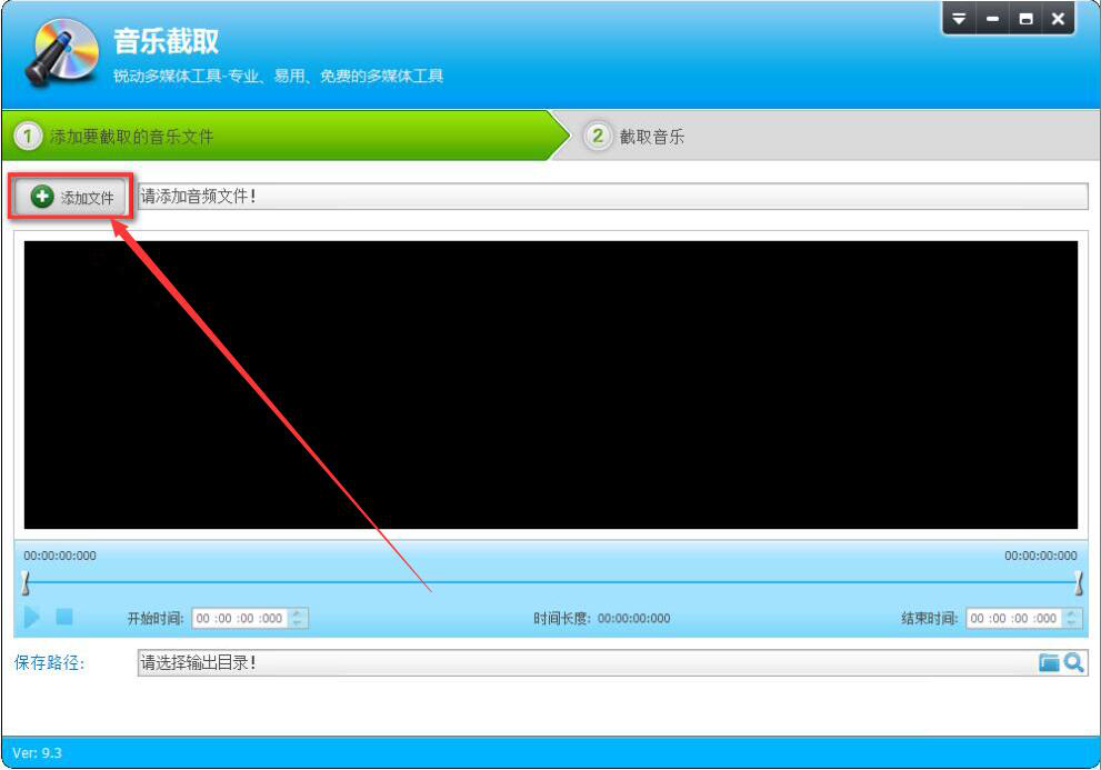 2、进入音频转换专家的音乐截取操作界面后,我们点击左上方的“添加文件”按钮。