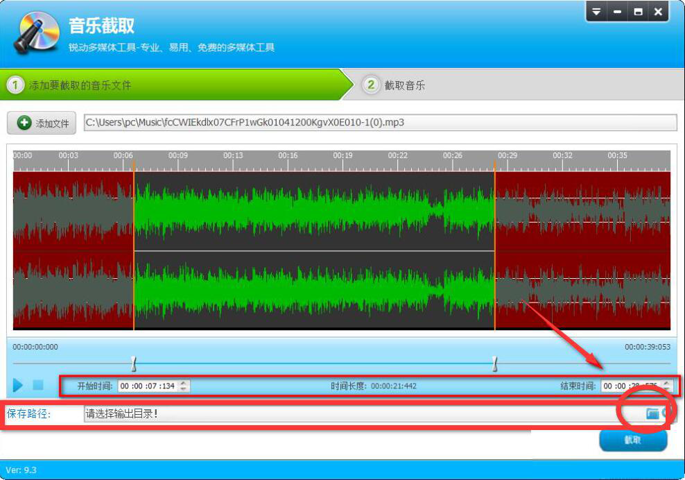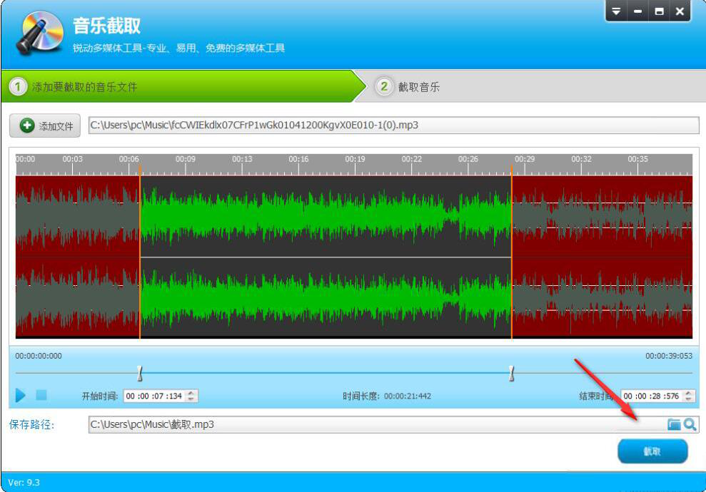7、保存路径设置好了后,我们点击界面右下方的“截取”按钮,音频转换专家便开始截取该音频片段。