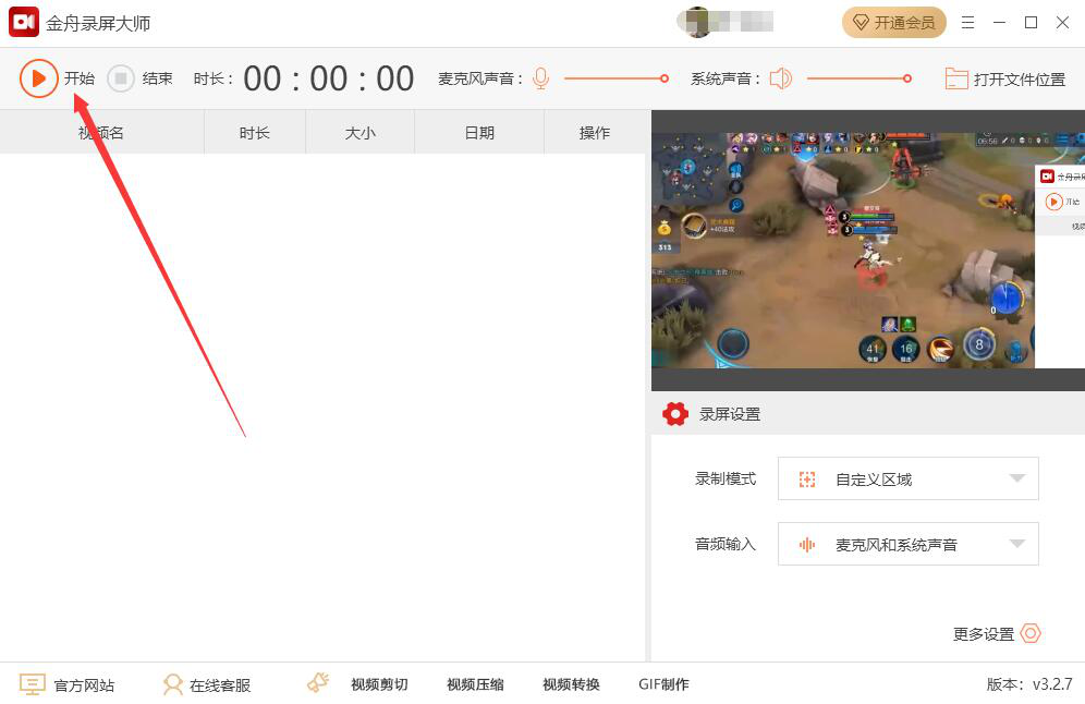 6、接下来,回到金舟录屏大师的操作界面,点击左上方的“开始”按钮,金舟录屏大师便开始录制视频。