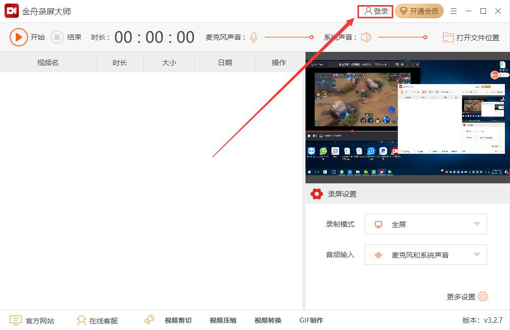 1、首先,我们打开金舟录屏大师,点击界面右上方的“登录”按钮,完成该软件的登录。