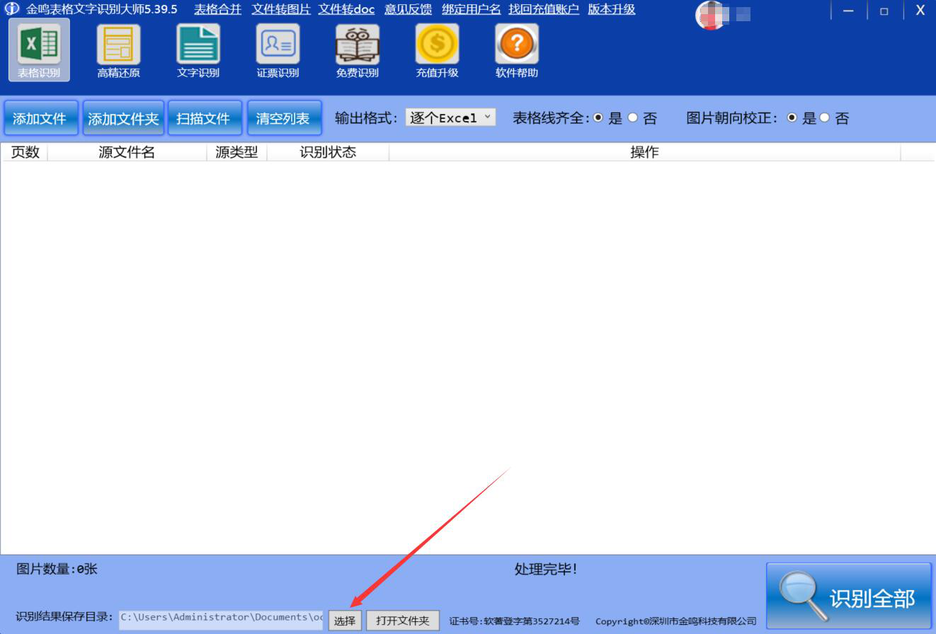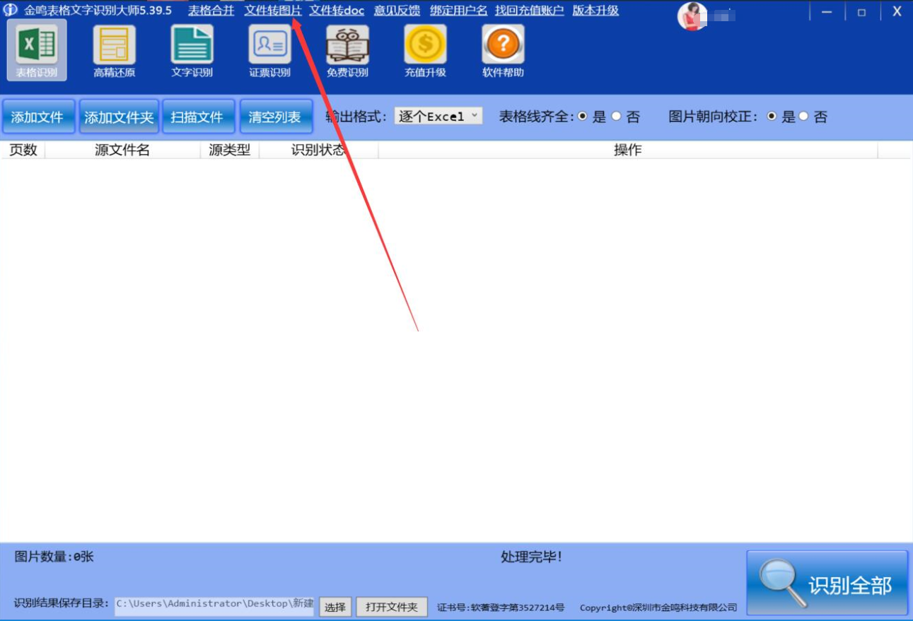 7、当金鸣表格文字识别大师成功地将PPT转图片的时候,界面下方会显示“处理完毕”。