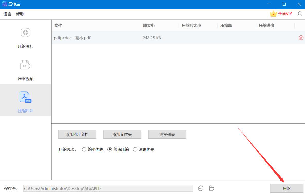 3、回到压缩宝的压缩PDF操作界面,我们根据自己的实际需要选择压缩的方式,这里选择的是“普通压缩”的方式。