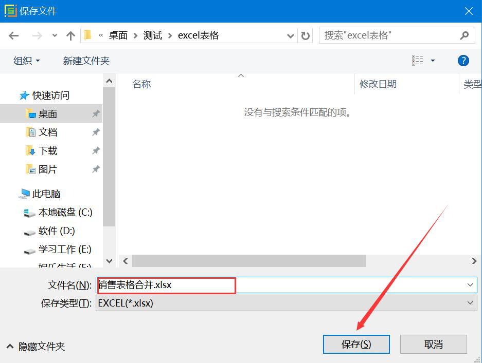 6、同时,Excel表格汇总分类能手会弹出保存文件的窗口,我们选择Excel文件合并后的保存路径。为了方便后续文件的区分、查找,我们对合并后的Excel文件重命名,再点击“保存”按钮。