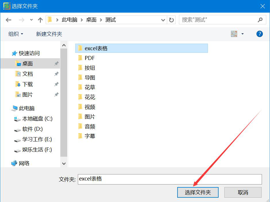 3、然后,在弹出的窗口中,我们将需要合并的Excel文件夹选中,并点击“选择文件夹”按钮,将其导入Excel表格汇总分类能手。
