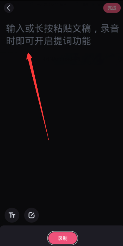 打开录音提词功能,进入窗口,如图,输入或者长按粘贴文稿,输入之后,点击【完成】,