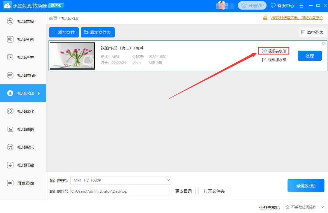 迅捷视频转换器如何去除视频水印?