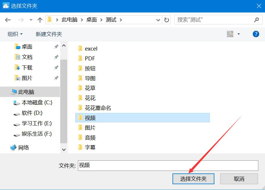 7、在迅捷视频转换器弹出的窗口中,我们选择去除了水印的视频的保存路径,再点击“选择文件夹”按钮。