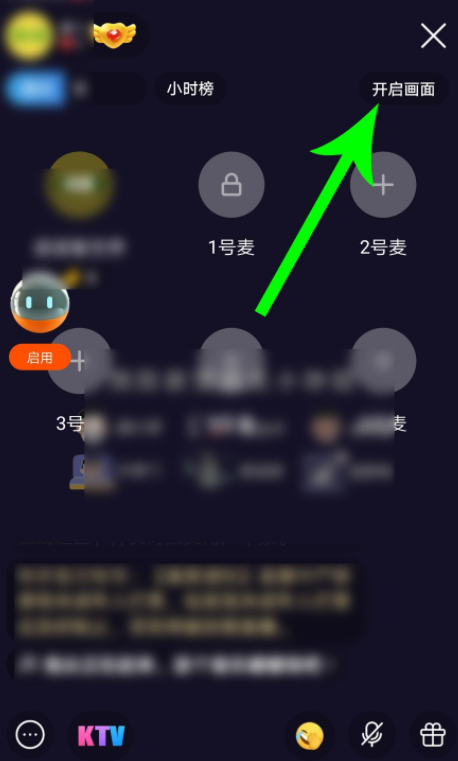 成功创建快手聊天室,界面如图,然后点击右上角的【开启画面】,