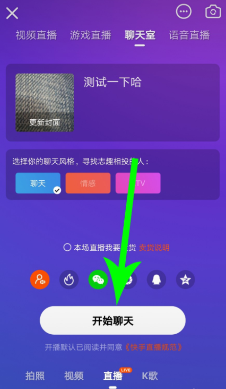 快手聊天室如何切换成视频直播?
