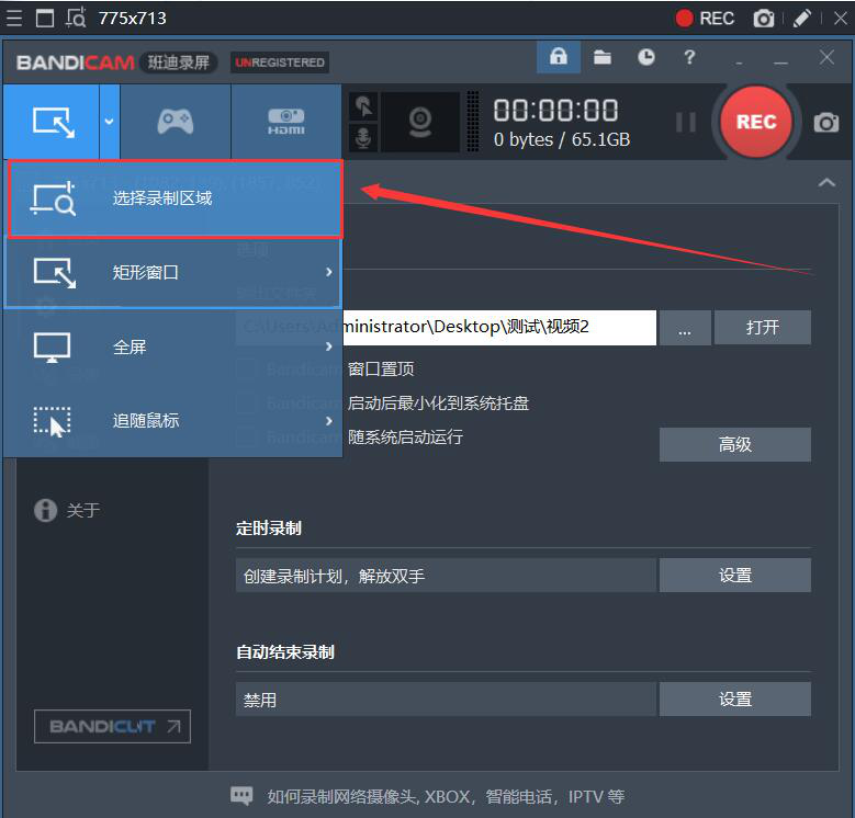 想要录制操作视频,我们可以用Bandicam录制电脑屏幕,它既可以自定义录制区域,也可以选择它自带的区域录制比例来录制和全屏录制。Bandicam支持多种录制模式,能满足电脑屏幕录制的多样化需求。