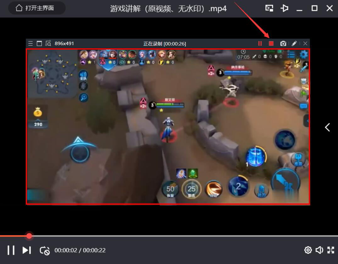 6、当不需要继续录制的时候,我们就点击录制选区右上方的红色“停止”按钮,Bandisoft Bandicam便结束电脑屏幕的录制。