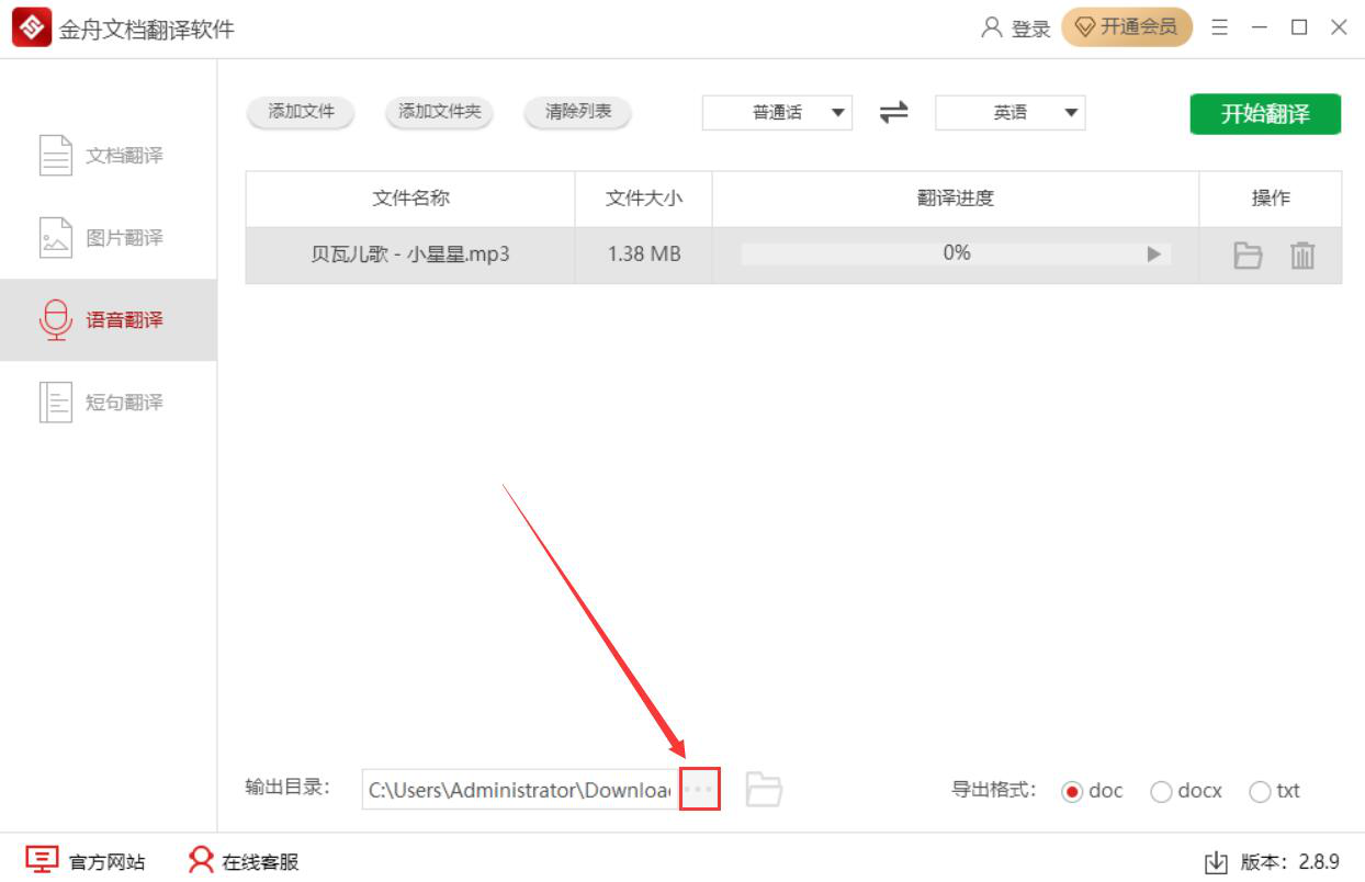 4、如果语音翻译后的结果输出目录需要更改,就点击金舟文档翻译软件界面下方的“…”按钮。