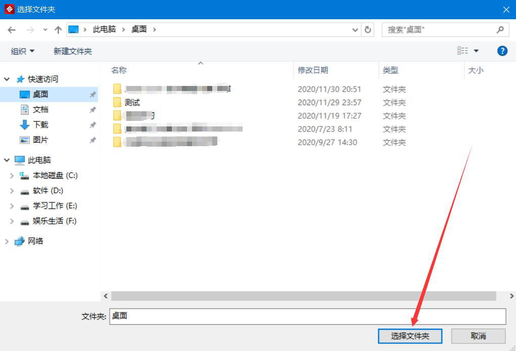 5、接下来,在金舟文档翻译软件弹出的窗口中,我们选择语音翻译后的保存路径,再点击“选择文件夹”按钮。