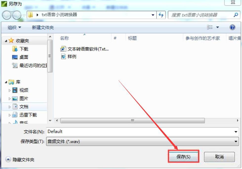 6、最后,在Txtvoice弹出的另存为窗口中,选择文字转语音后的保存路径,再点击“保存”按钮。