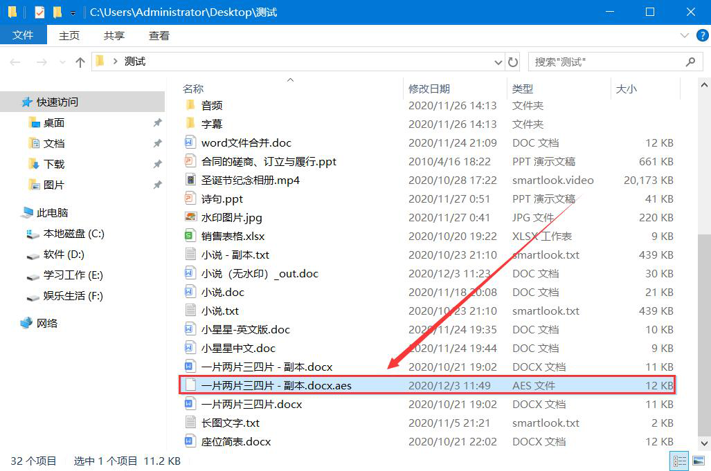 6、最后,我们从导入的电脑文件的源路径中可以看到HDCleaner加密后的电脑文件,是以“*.aes”为后缀的,如下图所示。