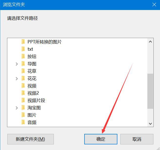 4、此时,PDFTool会弹出浏览文件夹窗口,我们选择PDF文件转换成Word后的保存路径,再点击“确定”按钮。