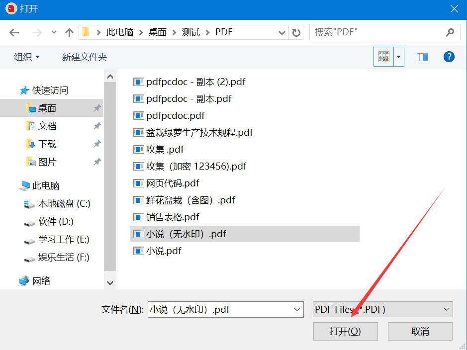 2、在弹出的窗口中,我们选择需要转Word的PDF文件,并点击“打开”按钮,将其导入PDFTool。