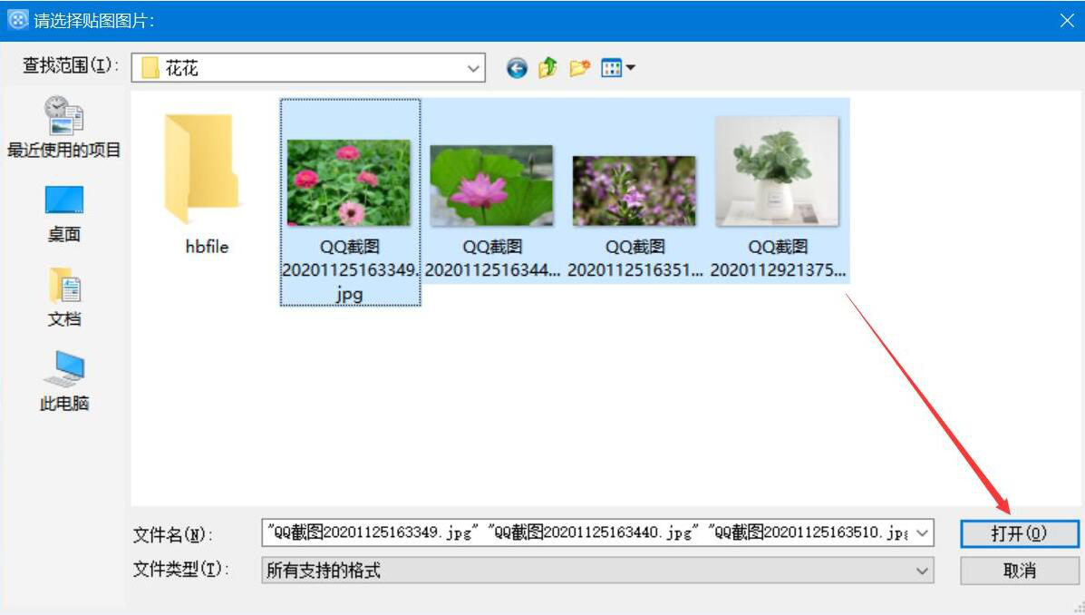 5、在爱剪辑弹出的窗口中,我们选择制作电子相册时会用到的图片,再点击“打开”按钮。