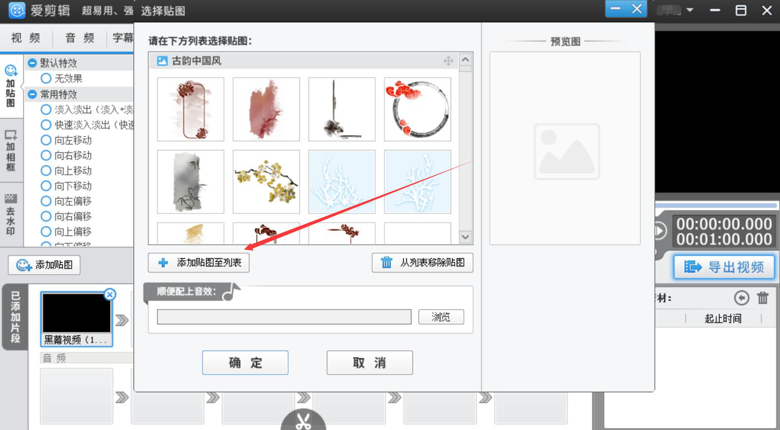4、此时,爱剪辑会弹出选择贴图窗口,我们点击“+添加贴图至列表”按钮。