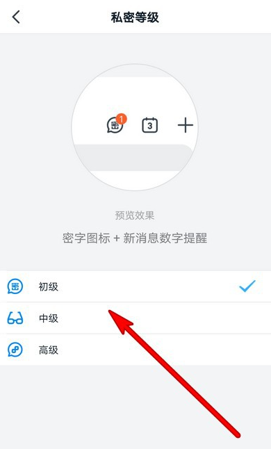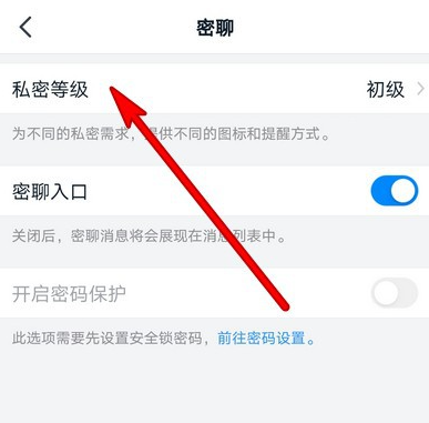 进入密聊服务窗口,点击【私密等级】,这里有三个等级,不同等级提供了不同的图标和提醒方式,大家自行选择设置。
