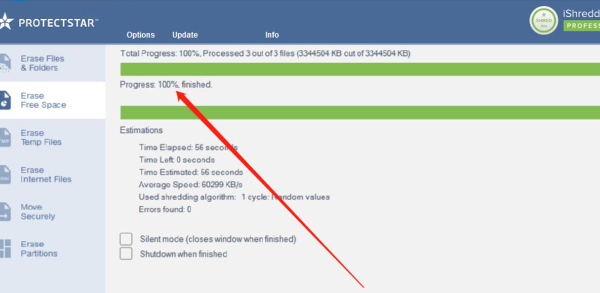 5、最后,当进度都显示100%的时候,则说明iShredder完成了磁盘空间的释放。