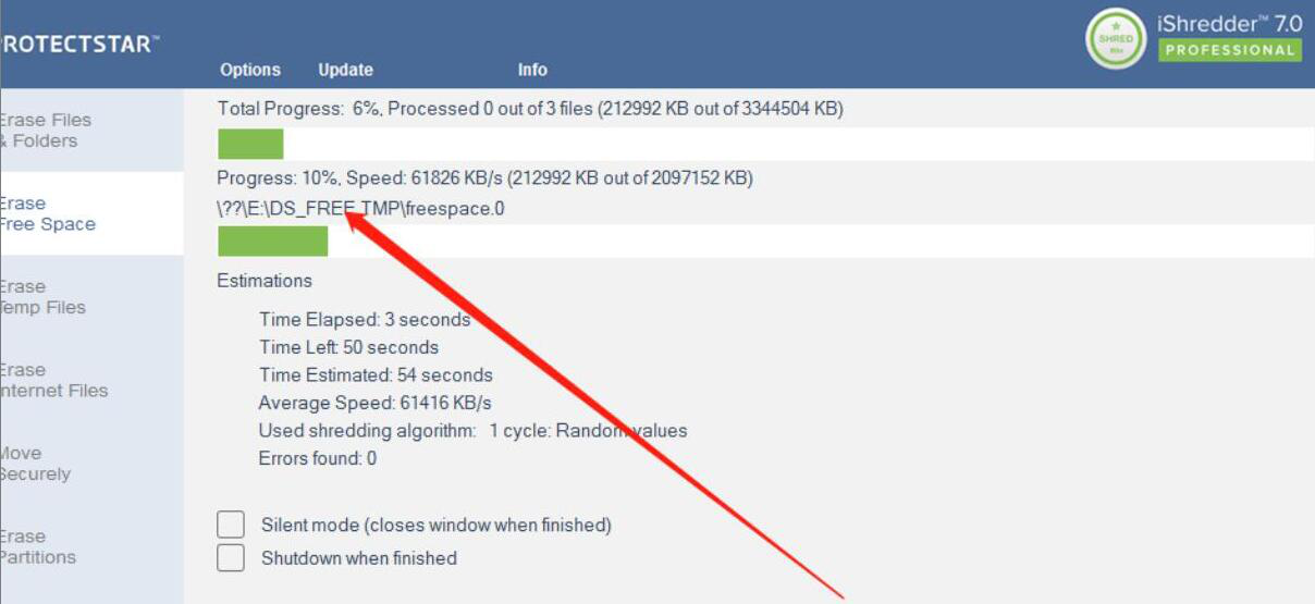 1、首先,我们打开iShredder软件,切换至“Erase Free Space”清除可用空间操作界面。