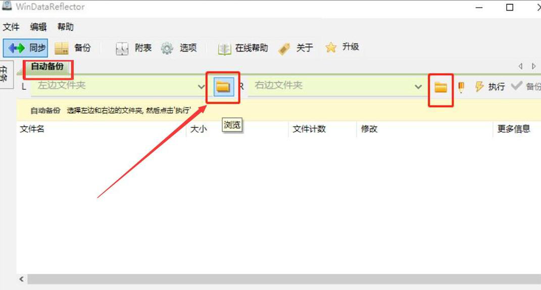 2、然后,在WinDataReflector操作界面中,我们点击左边文件夹中的“浏览”文件夹按钮。