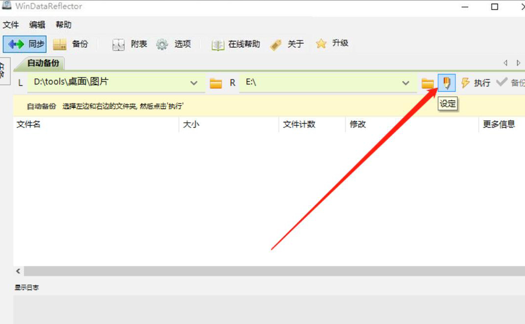 5、自动备份的电脑文件的保存路径设置好了,我们点击WinDataReflector界面右上方的“设定”按钮。