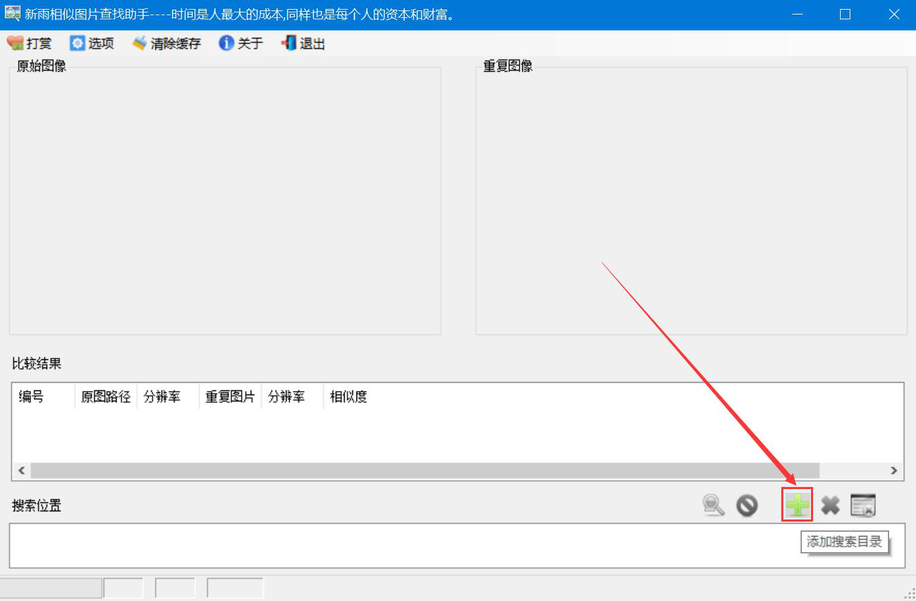 1、首先,我们打开新雨相似图片查找助手,点击界面右下方的添加搜索目录按钮。