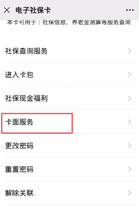 跳转至社保服务窗口,点击【电子社保卡】,选择【卡面服务】,