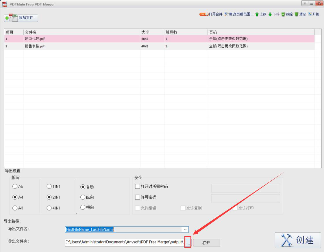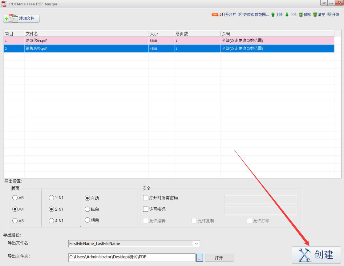 6、最后,点击界面右下方的“创建”按钮,PDFMate Free PDF Merger便开始合并PDF文件。