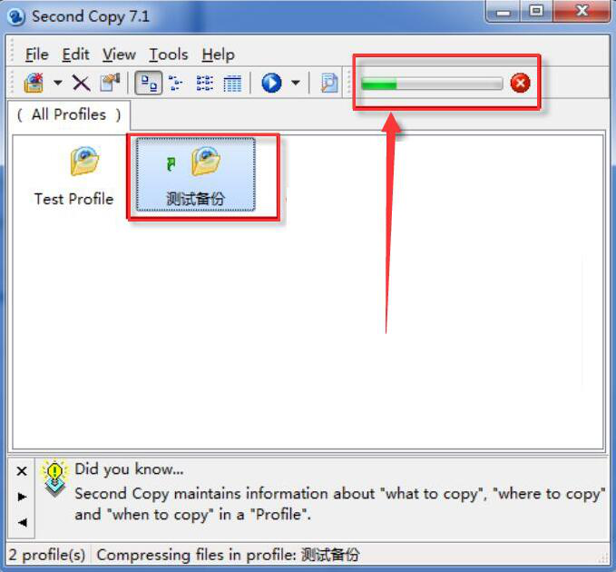 10、最后,在Second Copy操作主界面中,可以看到定时备份文件的备份进度。第一次备份完成,以后每次到了所设置的备份时间,Second Copy便会自动备份文件。