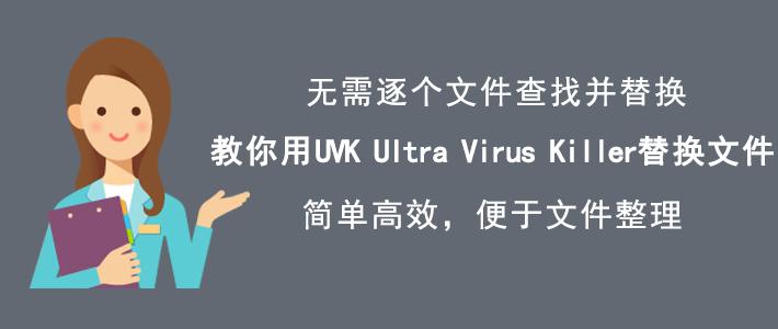 在整理电脑文件的时候,想要替换某个文件夹中的文件,没有必要一个个文件去查找再替换,我们可以直接使用UVK Ultra Virus Killer软件替换文件,这样的效率更高,速度更快。
