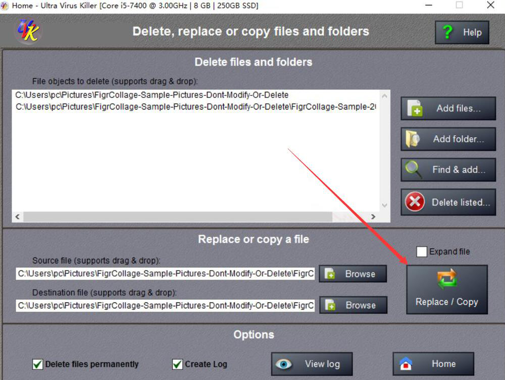 8、最后,点击界面右下方的“Replace/copy”按钮,UVK Ultra Virus Killer便开始替换文件。