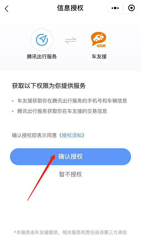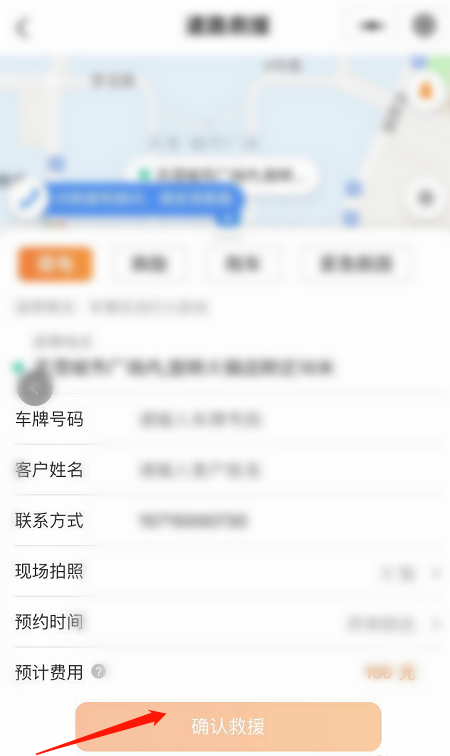 进入信息授权页面,阅读相关协议,点击【确认授权】,根据提示完善车辆信息,点击【确认救援】即可。