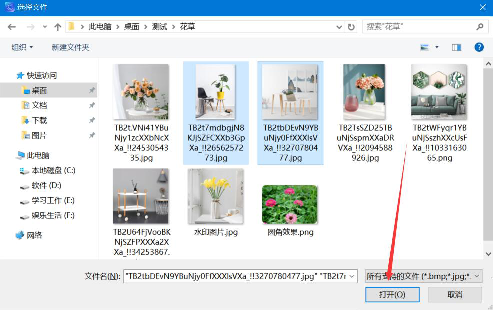 2、在弹出的窗口中,我们选择需要批量压缩的图片,并点击“打开”按钮,将其一并导入压缩宝。