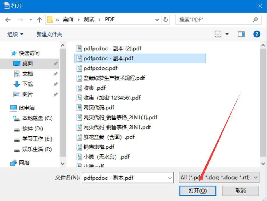 2、在弹出的窗口中,我们选择需要添加水印的PDF文件,并点击“打开”按钮,将其导入AlterPDF。