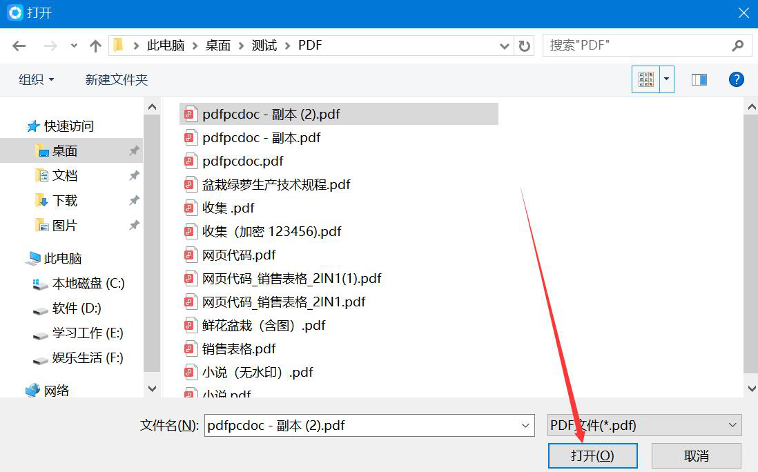 2、在弹出的窗口中,我们选择需要加密的PDF文件,并点击“打开”按钮,将其导入我速PDF转换器。
