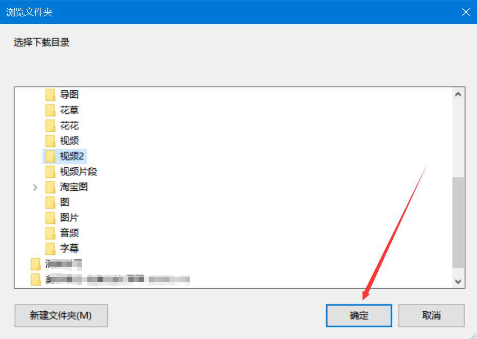 4、接下来,YTD Video Downloader弹出浏览文件夹窗口,我们选择网页视频下载后的保存路径,再点击“确定”按钮。