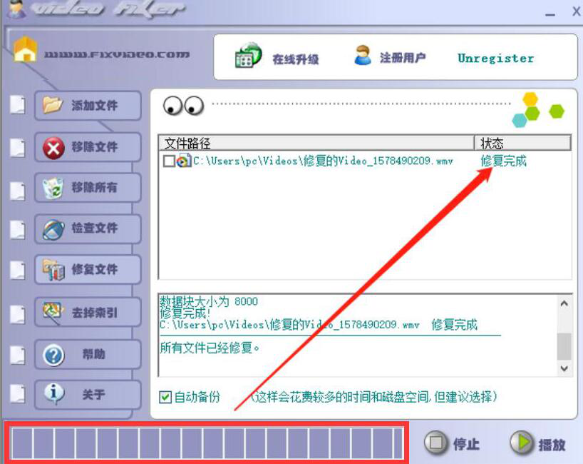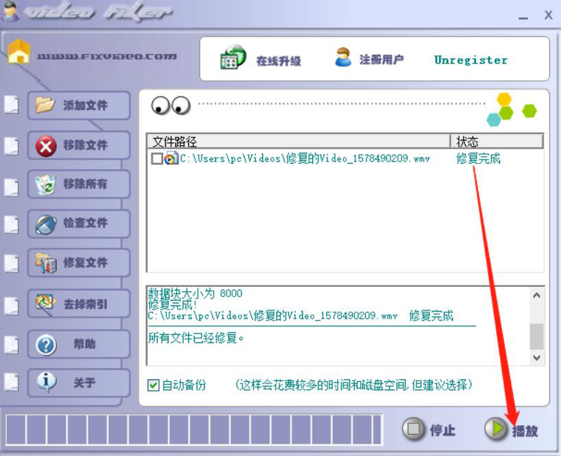5、最后,我们点击界面右下方的“播放”按钮,即可成功播放修复好的视频了。