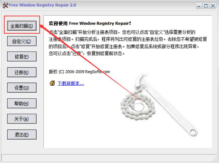 1、首先,我们打开Free Window Registry Repair软件,点击界面左上方的“全面扫描”按钮。