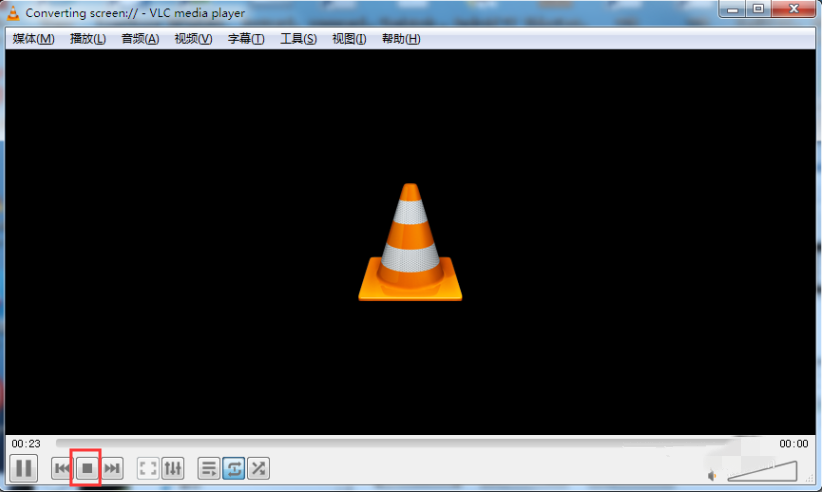 4、录制完成,点击任务栏中的VLC使其最大化,再点击左下角的【停止】图标,则录屏结束,