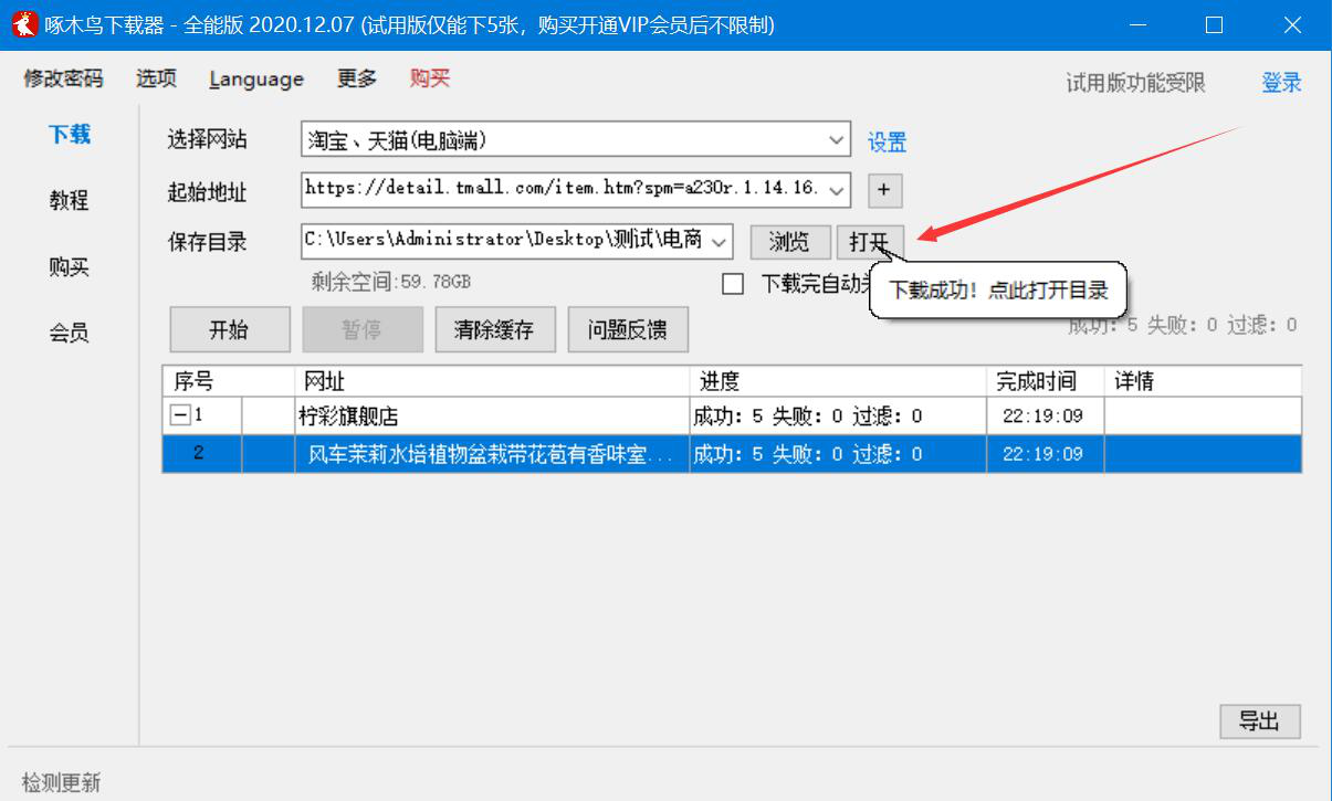 啄木鸟全能下载器如何下载淘宝图片?