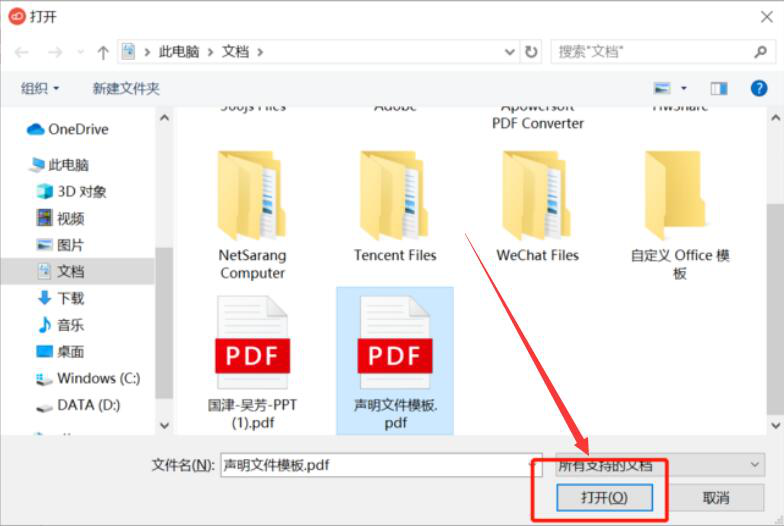2、然后,在弹出的窗口中,我们选择需要拆分的PDF文件,并点击“打开”按钮,将其导入云上PDF软件。