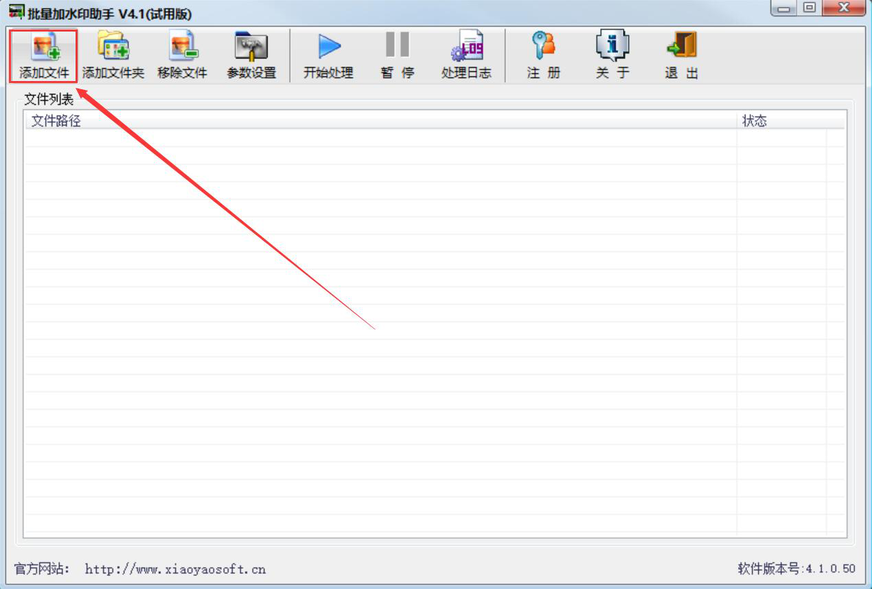 1、首先,我们打开批量加水印助手,点击界面左上方的“添加文件”按钮。